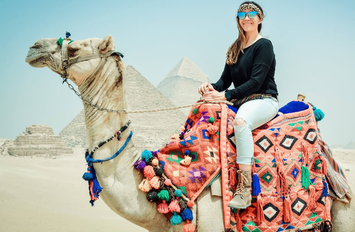 The day kicks off with a visit to the world-famous Giza Pyramids, where you'll stand in awe before the Great Pyramid, the last surviving wonder of the ancient world. The majestic Sphinx, with its enigmatic gaze, is a highlight of this unforgettable experience. Your Egyptologist guide will provide captivating insights into the history and construction of these monumental structures.